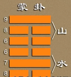 蒙卦下坎上艮,是山下有水,亦即山下流出泉水,清澈又可汇聚成河,是成长之象。此时必须把握良机,接受适当教育。