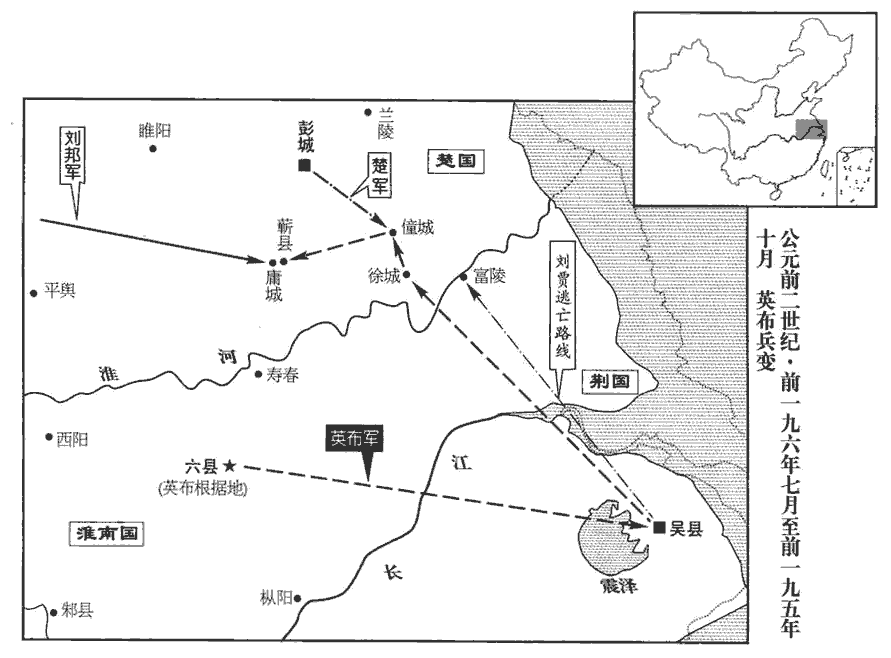 上召諸將問計。皆曰:「發兵擊之,坑豎子耳,何能為乎!」汝陰侯滕公班志,汝陰縣屬汝南郡,春秋胡子之國。史記正義曰:汝陰即今陽城。余據唐陽城縣屬河南郡,與漢汝南之汝陰相去頗遠。又據史記滕公傳:「平城圍解,增食細陽千戶」,細陽縣屬汝南郡,蓋與汝陰鄰境。索隱曰:汝陰屬汝南,亦據班志也。召故楚令尹薛公問之。令尹曰:「是固當反。」滕公曰:「上裂地而封之,疏爵而王之;疏,分也。其反何也?」令尹曰:「往年殺彭越,前年殺韓信;此三人者,同功一體之人也,自疑禍及身,故反耳!」滕公言之上,上乃召見,問薛公,薛公對曰:「布反不足怪也。使布出於上計,山東‹崤山以東›非漢之有也;出於中計,勝敗之數未可知也;出於下計,陛下安枕而臥矣。」上曰:「何謂上計?」對曰:「東取吳‹江蘇南部›,西取楚‹河南南部›,并齊‹山東东部›,取魯‹山東西南部›,傳檄燕‹河北北部›、趙‹河北南部›,固守其所,山東‹崤山以東›非漢之有也。」「何謂中計?」「東取吳,西取楚,并韓‹河南中部›,取魏‹河南北部、東部›,據敖倉‹河南荥阳北敖山粮仓›之粟,塞成皋‹河南荥阳西北汜水镇›之口,勝敗之數未可知也。」「何謂下計?」「東取吳,西取下蔡‹安徽凤台›,歸重於越‹浙江›,身歸長沙‹湖南长沙›,吳,謂荊王劉賈所封之地;楚,謂楚王交所封之地;齊,謂齊王肥所封之地。魯亦入楚境;韓地,時以益淮陽國;魏地,梁王友所封也。下蔡縣屬沛郡,春秋時之州來也。越,會稽地,故越王句踐之墟也。長沙,吳芮所封國,時其子臣嗣封。黥布都六,阻淮為固,故策其西取下蔡,東取劉賈,以據全淮。越在東南,故策其歸輜重於越以自厚,為深固不可取之計;布娶于長沙王,故策其身歸長沙;料其出於麗山之徒,慮不及遠也。重,直用翻。陛下安枕而臥,漢無事矣。」上曰:「是計將安出?」對曰:「出下計。」上曰:「何為廢上、中計而出下計?」對曰:「布,故麗山之徒也,麗,與驪同。事見八卷秦二世一年。自致萬乘之主,此皆為身,不顧後、為百姓萬世慮者也;皆為,於偽翻;下間為、為妻、為上同。故曰出下計。」上曰:「善!」封薛公千戶。乃立皇子長為淮南王‹府寿春,安徽寿县›。考異曰:史記諸侯年表云:「十二月,庚子,厲王長元年。」漢書諸侯王表:「十月庚午立。」今從漢書帝紀。