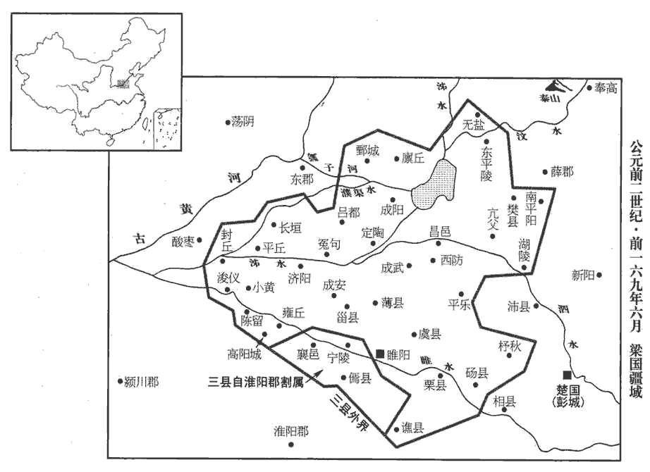 2夏,六月,梁‹府定陶,山东定陶›懷王揖薨,揖受封事見十三卷二年。無子。賈誼復上疏曰:復,扶又翻。「陛下即不定制,如今之勢,不過一傳、再傳,服虔曰:一、二傳世也。諸侯猶且人恣而不制,言人人自恣而不可制也。豪植而大強,言其矜豪自植立,太過於強也。漢法不得行矣。陛下所以為藩捍及皇太子之所恃者,唯淮陽‹府陈县,河南淮陽›、代‹府晋阳,山西太原›二國耳。淮陽王武、代王參,帝之子而太子之弟也,故云所恃唯此二國。代,北邊匈奴,與強敵為鄰,能自完則足矣;而淮陽之比大諸侯,廑jǐn如黑子之著面,廑,與僅同。師古曰:黑子,今所謂黶yǎn子也。著,則略翻;下北著同。適足以餌大國言國小如魚餌,適足為所吞食。而不足以有所禁禦。方今制在陛下;制國而令子適足以為餌,豈可謂工哉!臣之愚計,願舉淮南地以益淮陽,而為梁王立後,為,於偽翻。割淮陽北邊二、三列城與東郡以益梁。不可者,可徙代王而都睢陽‹河南商丘›。睢陽故宋國,微子所封;班志屬梁國。括地志:宋州宋城縣,在州南二里外,城中本漢之睢陽縣也。漢文帝封子武于大梁,以其地卑濕,徙睢陽,故改曰梁。睢,音雖。梁起於新郪qī‹安徽太和北›而北著之河,班志,新郪縣屬汝南郡。應劭曰:秦為郪丘;漢興,為新郪。師古曰:潁川縣。郪,千移翻。淮陽包陳‹河南淮陽›而南揵jiàn之江,陳,即謂古陳國之地也。晉灼曰:包,取也。如淳曰:揵,謂立封界也;或曰:揵,接也。師古曰:揵,巨偃翻。則大諸侯之有異心者破膽而不敢謀。梁足以捍齊、趙,淮陽足以禁吳、楚,陛下高枕,終無山東之憂矣,枕,職任翻。此二世之利也。如淳曰:從誼言,可二世安耳。師古曰:言帝身及太子嗣位之時。當今恬然,適遇諸侯之皆少;師古曰:恬,安也。少,謂年少。少,時照翻。數歲之後,陛下且見之矣。夫秦日夜苦心勞力以除六國之禍;今陛下力制天下,頤指如意,如淳曰:但動頤指麾,則所欲皆如意。仲馮曰:頤、指,兩事。高拱以成六國之禍,難以言智。苟身無事,畜亂,宿禍,畜,讀曰蓄。孰視而不定;孰,古熟字通。萬年之後,傳之老母、弱子,將使不寧,不可謂仁。」帝於是從誼計,徙淮陽王武為梁王,北界泰山‹山东泰安北›,西至高陽‹河南杞县西南高阳镇›,得大縣四十餘城。後歲余,賈誼亦死,死時年三十三矣。