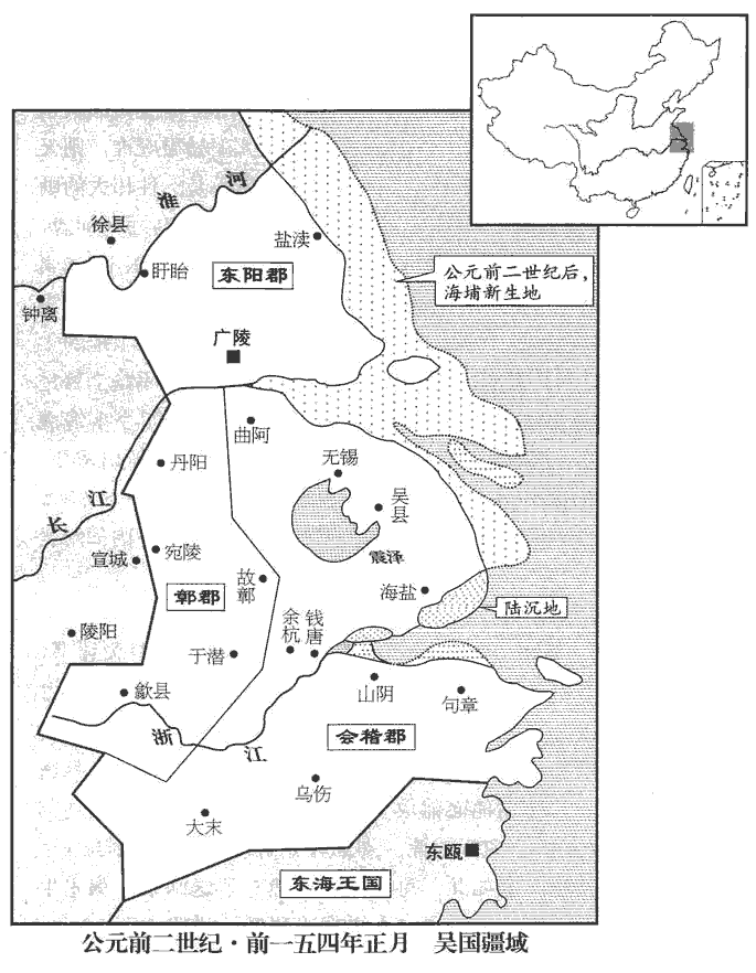 7吳王之棄軍亡也,軍遂潰,往往稍降太尉條侯及梁軍。降,戶江翻。吳王渡淮,走丹徒‹江蘇鎮江东丹徒镇›,班志,丹徒縣屬會稽郡,即春秋之朱方。括地志:丹徒故城,在潤州丹徒縣東南十八里。南徐州記:秦使赭衣鑿其處,因謂之丹徒,鑿處今在故縣西北六里丹徒峴xiàn東南。保東越‹都东瓯,浙江温州›,欲依東越以自保也。兵可萬餘人,收聚亡卒。漢使人以利啖東越,啖,徒覽翻,餌之也;又徒濫翻,譙醮也,食也。東越即紿吳王出勞軍,勞,力到翻。使人鏦cōng殺吳王,孟康曰:方言:戟謂之鏦。蘇林曰:鏦,音從容之從。師古曰:鏦,謂以矛戟撞殺之。鏦,楚江翻。盛其頭,馳傳以聞。盛,時征翻。傳,張戀翻。吳太子駒亡走閩越。吳、楚反,凡三月,皆破滅,於是諸將乃以太尉謀為是;然梁王由此與太尉有隙。為梁王毀短亞夫張本。