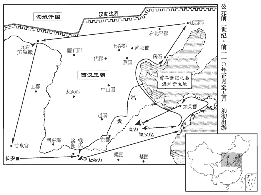 〖译文〗 汉武帝在泰山祭祀了天地,并无风雨,而方士们更加强调蓬莱山的神仙大概能够请到,于是汉武帝再次东至海边,兴高彩烈地盼望能遇到神仙。汉武帝打算亲自乘船出海去寻找蓬莱仙山,群臣劝谏,但无人能够阻止。东方朔说道:“与神仙相遇,要出于自然,不必急躁强求。若是有道述,就不愁遇不到;如果无道术,纵然到了蓬莱山,见到神仙,也没有益处。我希望陛下只管回到宫中,安静地等待,神仙自会降临。”汉武帝这才打消了出海的念头。正巧奉车都尉霍子侯突然重病,一日之间死去。霍子侯是霍去病的儿子,汉武帝非常难过,于是起驾离去,沿海岸北上至碣石,自辽西巡视北部边疆到九原,五月回到甘泉。此次出巡,行程共一万八千里。