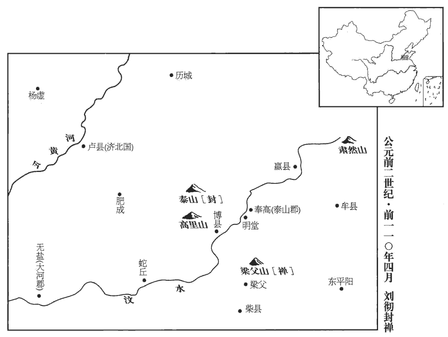 〖译文〗 夏季,四月,汉武帝起驾还朝,到达奉高,在梁父祭祀地主神。乙卯(十九日),汉武帝令担任侍中的儒家学者戴鹿皮帽,将笏板用丝带系在腰间,参加射牛仪式。在泰山东坡之下祭祀天神,如同祭祀泰一神的礼仪。祭坛宽一丈二尺,高九尺,坛下埋藏着汉武帝给神仙的玉牒书,内容隐秘。祭祀仪式结束后,汉武帝独自与侍中、奉车都尉霍子侯一起登上泰山,再行祭天之礼,一切过程都禁不示人。第二天,君臣从北道下山。丙辰(二十日),汉武帝在泰山脚下东北部的肃然山祭祀地神,如同祭祀后土神之礼,汉武帝身穿黄色衣服,在音乐的伴奏下一一亲自叩拜。用江淮地区出产的三棱茅草作为供神祭品的衬垫,用五种颜色的泥土做祭坛。在祭祀天地的神祠中,夜间仿佛有光,白天有白云从坛中产生。汉武帝祭完地神之 后,回到奉高,坐在明堂中,众大臣轮番上前歌功颂德,上寿祝福。汉武帝下诏说:“朕以渺小的身躯,继承至尊高位,兢兢业业,唯恐德才不足,不懂得礼乐,所以供奉八神,祈求庇护。蒙天地神灵恩赐祥瑞,目有所见,耳有所闻,震惊于其事怪异,想阻止却又不敢,于是登泰山祭祀天神,至梁父,然后在肃然山升坛祭祀地神,反省自新,与士大夫一起吉祥地开始新的生活。十月,改年号为元封元年。此次巡行所到之博县、奉高、蛇丘、历城、梁父等地,一概免除百姓的田租及欠交的赋税,不收今年的算赋。并赐天下有爵百姓擢升一级。”又规定:天子每五年巡游一次,至泰山祭祀,各诸侯封国都要在泰山脚下修建官邸。
