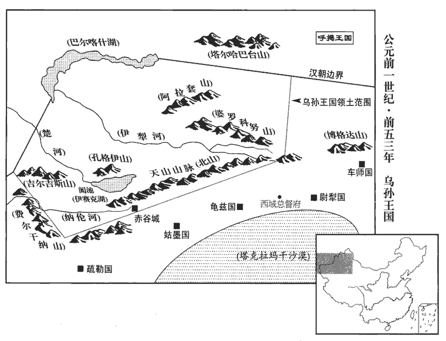 9烏孫狂王復尚楚主解憂,復,扶又翻。生一男鴟chī靡,不與主和;又暴惡失眾。漢使衛司馬魏和意、副侯任昌至烏孫。侯,衛侯也;為和意之副。任,音壬。公主言:「狂王為烏孫所患苦,易誅也。」易,以豉翻。遂謀置酒,使士拔劍擊之。劍旁下,師古曰:不正下也。狂王傷,上馬馳去。其子細沈瘦會兵圍和意、昌及公主于赤谷城‹中亚伊塞克湖东南›;師古曰:瘦,音搜。赤谷城,烏孫國都,去長安八千九百里。數月,都護鄭吉發諸國兵救之,乃解去。漢遣中郎將張遵持醫藥治狂王,賜金帛;治,直之翻。因收和意、昌系瑣,系瑣,即今云鎖索也。從尉犁‹新疆博湖›檻車至長安,斬之。