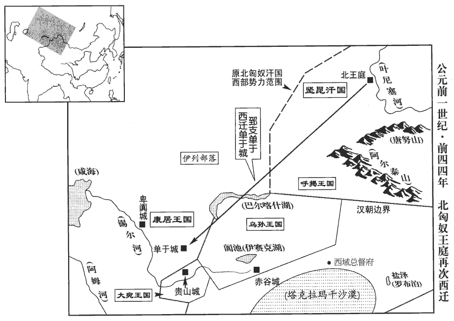 6匈奴郅支單于‹王庭设西伯利亚叶尼塞河上游›自以道遠,又怨漢擁護呼韓邪‹王庭设阴山北›而不助己,困辱漢使者江乃始等;遣使奉獻,因求侍子。郅支遣子入侍,見上卷宣帝甘露元年。漢議遣衛司馬谷吉送之,谷,姓也。御史大夫貢禹、博士東海‹山東郯城›匡衡以為:「郅支單于鄉化未醇,師古曰:不雜曰醇。醇,壹也,厚也。鄉,讀曰嚮;下同。所在絕遠,宜令使者送其子,至塞而還。」還,從宣翻,又如字。吉上書言:「中國與夷狄有羈縻不絕之義,今既養全其子十年,德澤甚厚,空絕而不送,近從塞還,示棄捐不畜,畜,許六翻。使無鄉從之心,師古曰:鄉從,謂嚮化而從命也。棄前恩,立後怨,不便!議者見前江乃始無應敵之數,智勇俱困,以致恥辱,即豫為臣憂。臣幸得建強漢之節,承明聖之詔,宣諭厚恩,不宜敢桀。師古曰:言郅支畏威,當不敢桀猾也。若懷禽獸心,加無道於臣,則單于長嬰大罪,師古曰:嬰,猶帶也。必遁逃遠舍,師古曰:舍,止也。不敢近邊。近,其靳翻。沒一使以安百姓,國之計,臣之願也。願送至庭。」郅支單于庭也。上許焉。既至,郅支單于怒,竟殺吉等;考異曰:陳湯傳:「初元四年,郅支求侍子。」元帝紀:「五年,谷吉使匈奴,不還。」湯傳又云:「御史大夫貢禹議吉不可遣。」按禹今年六月始為御史大夫,或者郅支以明年求侍子,而吉以五年使匈奴也!」自知負漢,又聞呼韓邪益強,恐見襲擊,欲遠去。會康居‹巴爾喀什湖西南锡尔河北岸突厥斯坦›王數為烏孫‹中亚伊塞克湖东南›所困,數,所角翻;下同。與諸翕xī侯計,以為:「匈奴大國,烏孫素服屬之。今郅支單于困阨在外,可迎置東邊,使合兵取烏孫而立之,師古曰:言與郅支并力共滅烏孫,以其地立郅支,令居之也。長無匈奴憂矣。」即使使至堅昆,通語郅支。宣帝黃龍元年,郅支都堅昆。郅支素恐,又怨烏孫,怨烏孫事亦見上卷黃龍元年。聞康居計,大說,說,讀曰悅。遂與相結,引兵而西。郅支人眾中寒道死,餘財三千人。師古曰:中寒,傷於寒也。道死,死於道上也。中,竹仲翻。財,與纔同。到康居,康居王以女妻郅支;郅支亦以女予康居王。妻,七細翻。予,讀曰與。康居甚尊敬郅支,欲倚其威以脅諸國。郅支數借兵擊烏孫,深入至赤谷城,殺略民人,敺畜產去。師古曰:敺,與驅同。烏孫不敢追,西邊空虛不居者五千里。西域傳:烏孫國,治赤谷城,西至康居蕃地五千里。若云空虛者五千里,則自赤谷以西皆不居矣。此已抵其國都,不得云西邊也。陳湯傳作「且千里」,當從之。