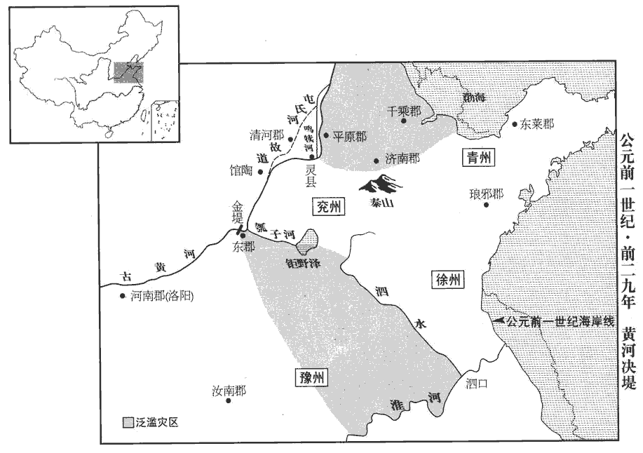 7大雨水十餘日,河決東郡‹河南濮陽西南›金堤‹千里堤,河南濮阳南一公里›。師古曰:金堤者,河堤之名,今在滑州界。先是清河‹河北清河›都尉馮逡奏言:「郡承河下流,據溝洫志:逡言清河郡承河下流,與兗州,東郡分水為界。先,悉薦翻。逡,七倫翻。土壤輕脆易傷,易,以豉翻。頃所以闊無大害者,以屯氏河通兩川分流也。師古曰:闊,稀也。今屯氏河塞靈‹山東高唐南›鳴犢口,又益不利,屯氏河塞,見上卷元帝永光五年。塞,悉則翻。獨一川兼受數河之任,雖高增堤防,終不能泄。如有霖雨,旬日不霽,必盈溢。師古曰:雨止曰霽,音子詣翻,又音才詣翻。九河故跡,今既滅難明,夏禹疏九河。孔安國曰:河水分九道,在兗州界。爾雅曰:徒駭一,太史二,馬頰三,覆釜四,胡蘇五,簡六,潔七,鉤盤八,鬲gé津九。屯氏河新絕未久,其處易浚;師古曰:浚,謂治導之,令其深也。浚,音峻。又其口所居高,於以分殺水力,道里便宜,殺,音所介翻,減也。可復浚以助大河,復,扶又翻。泄暴水,備非常。不豫修治,治,直之翻。北決病四、五郡,南決病十餘郡,然後憂之,晚矣!」事下丞相、御史,白遣博士許商行視,下,遐稼翻。師古曰:白,白于天子也。行,音下更翻。以為「方用度不足,師古曰:言國家少財役也。可且勿浚。」後三歲,河果決于館陶‹山東館陶›及東郡‹河南濮陽西南›金堤‹千里堤,河南濮阳南一公里›,氾濫兗‹山東西部›、豫‹河南›及【章:乙十一行本「及」作」入」;孔本同。】平原‹山東平原县›、千乘‹山東高青东北›、濟南‹山東章丘›,乘,繩證翻。濟,子禮翻。凡灌四郡、三十二縣,水居地十五萬餘頃,深者三丈;壞敗官亭、室廬且四萬所。壞,音怪。敗,補邁翻。