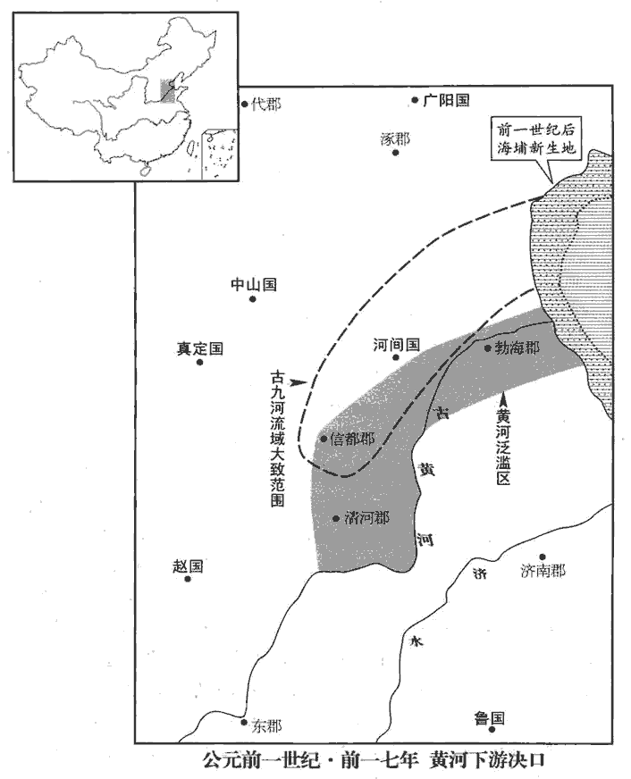 1秋,勃海‹河北滄州东南›、清河‹河北清河›、信都‹河北冀縣›河水湓pén溢,勃海,唐滄、景州。清河,唐貝州。信都,唐冀州。師古曰:湓,湧也;音普頓翻。灌縣、邑三十一,敗官亭、民舍四萬餘所。敗,補邁翻。平陵‹陝西咸陽西平陵乡›李尋【章:乙十一行本「尋」下有「等」字;孔本同。】奏言:「議者常欲求索九河故跡而穿之。今因其自決,可且勿塞,以觀水勢;索,山客翻。塞,悉則翻;下同。河欲居之,當稍自成川,跳出沙土。然後順天心而圖之,必有成功,而用財力寡。」於是遂止不塞。朝臣數言百姓可哀,上遣使者處業振贍之。師古曰:處業,謂安處之,使得居業。數,所角翻。處昌呂翻。