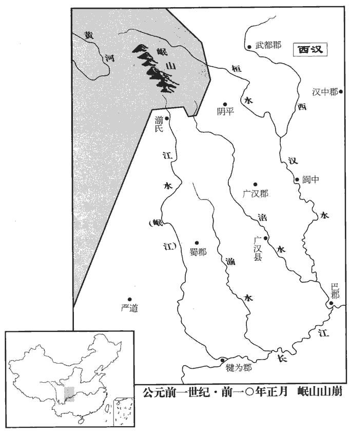 1春,正月,丙寅‹十›,蜀郡岷山‹四川若尔盖县东›崩,地理志,岷山,在蜀郡湔jiān氐道西徼外。禹貢所謂岷山導江,即此山也。水經註曰:岷山,即瀆山,水曰瀆水,亦曰汶阜山,在氐道徼外,江水所導也。大江泉源發羊膊嶺下,緣崖散漫,小大百數,殆未濫觴,東南下百餘里,至白馬嶺西,歷天彭關,亦謂之天谷。天彭山兩山相對,其高若闕,謂之天彭門。江水自此以上至微弱,所謂其源濫觴者也。漢元延中,岷山崩,壅江水三日不流,即其處。岷,音武巾翻。壅江三日,江水竭。劉向大惡之,惡,音烏路翻;惡其徵異也。曰:「昔周岐山崩,三川竭,而幽王亡。周幽王二年,三川竭,岐山崩。師古曰:三川,涇、渭、洛也。洛,即漆、沮也。余按幽王時有是異,後卒為犬戎所殺。岐山者,周所興也。周自太王避狄去豳bīn,而邑於岐山之下,周之王業遂興於此。漢家本起於蜀、漢,高帝始王漢中,起兵還定三秦,誅項羽,遂有天下。今所起之地,山崩川竭,星孛又及攝提、大角,從參至辰,天文志:房南眾星曰騎官,左角理,右角將。大角者,天王帝坐廷,其兩旁各有三星鼎足句之,曰攝提。攝提者,直斗杓所指,以建時節,故曰攝提格。晉天文志:參十星,於辰在申。至辰者,至大火也。自氐五度至尾九度,為大火,於辰在卯。如淳曰:孛星尾長及攝提大角,始發於參至辰也。孛,蒲內翻。參,疏簪翻。殆必亡矣!」