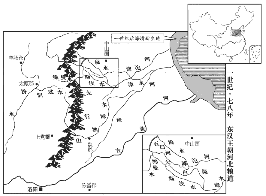 4初,顯宗‹刘庄›之世,治虖沱、石臼河‹流经河北灵寿西境›,從都慮至羊膓倉‹山西静乐›,賢曰:石臼河,在今定州唐縣東北。酈道元註水經云:汾陽故城積粟所在,謂之羊膓倉,在晉陽西北;石隥縈紆,若羊膓焉,故以為名。今嵐州界羊膓阪是也。唐嵐州宜芳縣,本漢汾陽縣,隋置嵐城縣,唐更名宜芳。杜佑曰:宜芳縣有古秀容城,漢羊膓倉。余考水經註云:案司馬彪郡國志,常山南行唐縣有石臼谷,蓋欲乘呼沱之水,轉山東之漕,自都慮至羊膓倉,憑汾水以漕太原。又考郡國志,常山蒲吾縣註引古今註曰:永平十年,作常山呼沱河蒲吾渠通漕船。又考班固地理志,太原郡上艾縣註曰:綿曼水東至蒲吾入呼沱水。又蒲吾縣註曰:大白渠水首受綿曼水,東南至下曲陽入斯洨xiáo。則知此漕自大白渠入綿曼水,自綿曼水轉入汾水以達羊膓倉也。慮,音閭,杜佑曰:石臼河,在定州唐昌縣。唐昌,漢苦陘xíng縣也。欲令通漕。太原吏民苦役,連年無成,死者不可勝算。勝,音升。帝以郎中鄧訓為謁者,監領其事。訓考量隱括,賢曰:隱審量括之也。孫卿子曰:鉤木必待隱括蒸揉,然後直也。監,古銜翻。量,音良。知其難成,具以上言。上,時掌翻。夏,四月,己巳‹九›,詔罷其役,更用驢輦,更,工衡翻。歲省費億萬計,全活徒士數千人。訓,禹之子也。