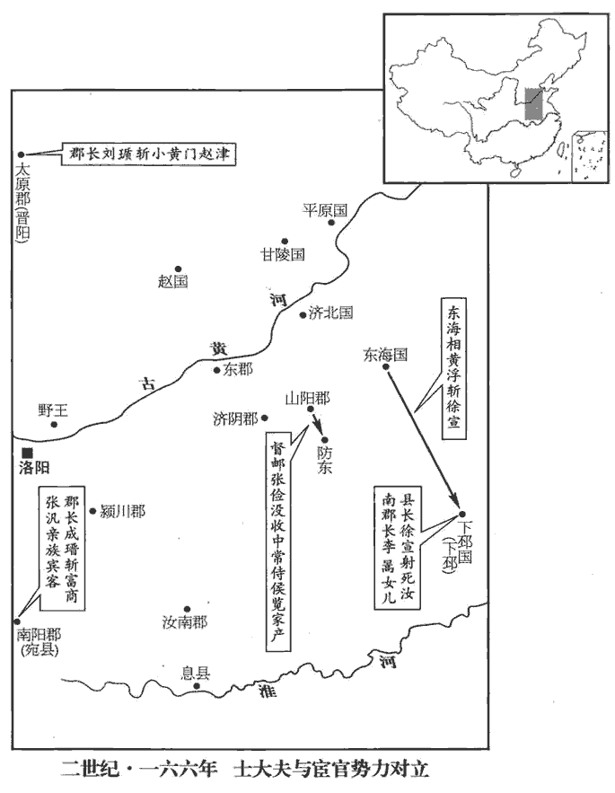 9宛陵‹河南新郑东北›大姓羊元群罷北海郡‹山东昌乐西›,宛陵縣,屬河南尹。臧污狼籍;郡舍溷hùn軒有奇巧,賢曰:溷軒,廁屋。亦載之以歸。河南尹李膺表按其罪;元群行賂宦官,膺竟反坐。反坐,按其罪而不得行,反自坐罪。單超弟遷為山陽‹山东金乡西北昌邑镇›太守,以罪繫獄,廷尉馮緄gǔn考致其死;考鞠而致其死罪也。緄,古本翻。中官相黨,共飛章誣緄以罪。中常侍蘇康、管霸,固天下良田美业,固,障固也。州郡不敢詰,大司農劉祐移書所在,依科品沒入之;帝大怒,與膺、緄俱輸作左校。