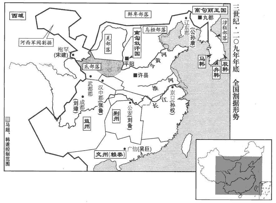 6初,蒼梧‹广西梧州›士燮xiè為交趾‹越南河内东北北宁府›太守。交州‹两广及越南北›刺史朱符為夷賊所殺,州郡擾亂,燮表其弟壹領合浦‹广西合浦东北›太守,䵋wěi領九真‹越南清化›太守,䵋,胡悔翻,又于鄙翻。武領南海‹广州›太守。燮體器寬厚,中國士人多往依之。雄長一州,偏在萬里,威尊無上,天下殽亂,燮雄據偏州,人但知威尊,無復知有天子也。長,知兩翻。出入儀衛甚盛,震服百蠻。