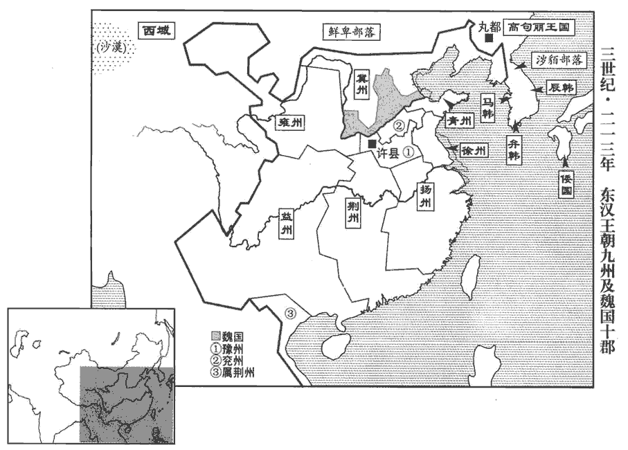 2庚寅‹三›,‹刘协,时年三十三›詔并十四州,復為九州。十四州,司、豫、冀、兗、徐、青、荊、揚、益、梁、雍、并、幽、交也。復為九州者,割司州之河東、河內、馮翊、扶風及幽、并二州皆入冀州;涼州所統,悉入雍州,又以司州之京兆入焉;又以司州之弘農、河南入豫州,交州并入荊州,則省司、涼、幽、并而復禹貢之九州矣。此曹操自領冀州牧,欲廣其所統以制天下耳。
