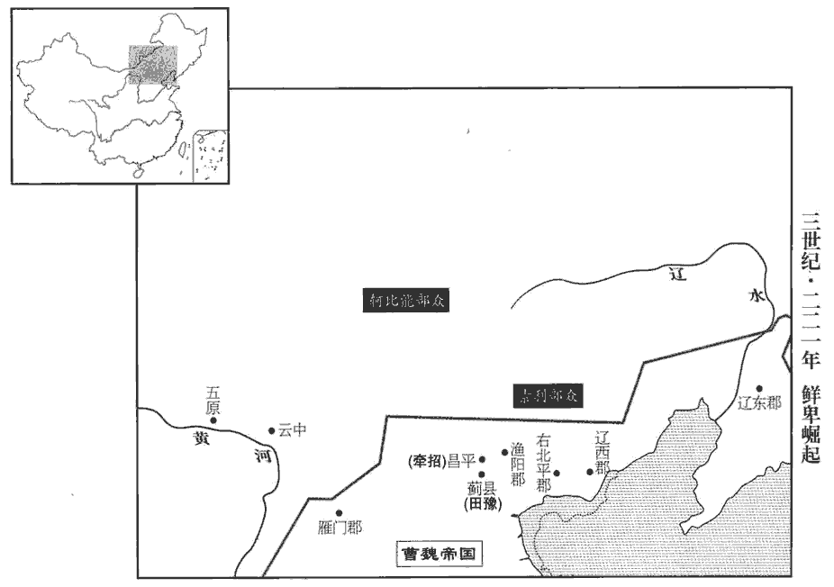 25初,太祖既克蹋頓,事見六十五卷漢獻帝建安十二年。蹋,徒臘翻。而烏桓浸衰,鮮卑大人步度根、軻比能、素利、彌加、厥機等因閻柔上貢獻,求通市,通關市,以其土物與中國互市也。上,時掌翻。太祖皆表寵以為王。軻比能本小種鮮卑,種,章勇翻。以勇健廉平為眾所服,由是能威制諸部,最為強盛,徒勇健而不廉平,未必能制諸部也。自雲中‹内蒙托克托›、五原‹内蒙包头›以東抵遼水,皆為鮮卑庭。軻比能與素利、彌加割地統御,各有分界。分,扶問翻。軻比能部落近塞,近,其靳翻。中國人多亡叛歸之;素利等在遼西‹辽宁卢龙东›、右北平‹河北丰润›、漁陽‹北京密云›塞外,道遠,故不為邊患。帝以平虜校尉牽招為護鮮卑校尉,南陽‹河南南阳›太守田豫為護烏桓校尉,使鎮撫之。