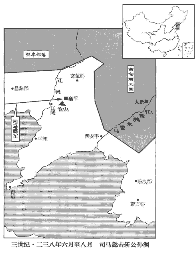 雨霽,懿乃合圍,作土山地道,楯櫓鉤衝,楯,干也,攻城之士以扞蔽其身。櫓,樓車,登之以望城中。鉤,鉤梯也。所以鉤引上城者。衝,衝車也,以衝城。晝夜攻之,矢石如雨。淵窘急,窘,巨隕翻。糧盡,人相食,死者甚多,其將楊祚等降。八月,淵使相國王建、御史大夫柳甫請解圍卻兵,當君臣面縛。懿命斬之,檄告淵曰:「楚、鄭列國,而鄭伯猶肉袒牽羊迎之。左傳:楚莊王圍鄭,克之,入自皇門,至于逵路,鄭伯肉袒牽羊以逆。孤天子上公,漢太傅,位上公。懿時為太尉而自謂上公,以太尉於三公為上也。而建等欲孤解圍退舍,豈得禮邪!二人老耄,傳言失指,已相為斬之。為,于偽翻。若意有未已,可更遣年少有明決者來!」少,詩照翻。淵復遣侍中衛演乞克日送任,送任,謂送質子也。復,扶又翻。懿謂演曰:「軍事大要有五:能戰當戰,不能戰當守,不能守當走;餘二事,但有降與死耳。降,戶江翻。汝不肯面縛,此為決就死也,不須送任!」壬午‹二十三›,襄平潰,淵與子脩將數百騎突圍東南走,大兵急擊之,斬淵父子於梁水之上。班志:遼東郡遼陽縣,註云:大梁水西南至遼陽,入遼水。水經註:小遼水出玄菟高句麗縣遼山,西南流逕襄平縣,入大梁水;水出北塞外,西南流而入于遼水。懿既入城,誅其公卿以下及兵民七千餘人,築為京觀。杜預曰:積尸封土於其上,謂之京觀。觀,古玩翻。遼東、帶方‹朝鲜沙里院城›、樂浪‹朝鲜平壤›、玄菟‹辽宁沈阳›四郡皆平。漢帶方縣,屬樂浪郡,公孫氏分立郡。陳壽曰:建安中,公孫康分屯有以南荒地為帶方郡,倭、韓諸國羈屬焉。樂浪,音洛琅。菟,同都翻。