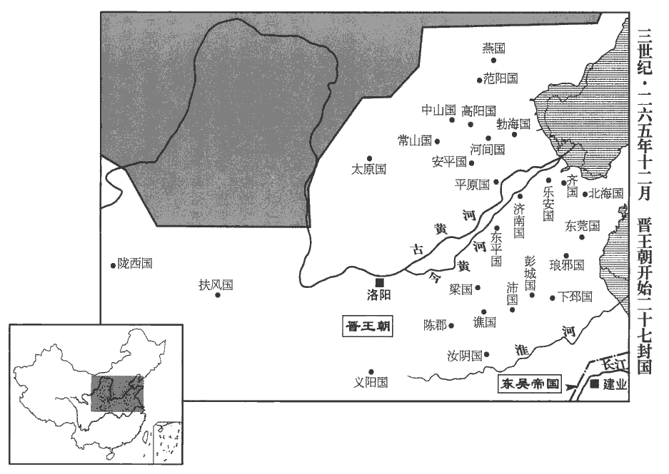 〖译文〗 [11]十一月,壬戌(十二日),魏元帝把皇位禅让给晋王。甲子(十四日),魏元帝搬到金墉城居住。太傅司马孚与魏元帝辞别,拉着魏元帝的手,流泪叹息不能自制,说:“我到死的那一天,仍然是大魏真正的臣子。”丙寅(十六日),晋王司马炎登上皇帝位,大赦天下,改年号为泰始。丁卯(十七日),尊奉魏元帝为陈留王,宫室安排在邺城,优厚高贵的礼制待遇,都仿效魏国初期的制度。魏宗室诸王都降为侯。追尊晋宣王司马懿为宣皇帝,晋景王司马师为景皇帝,晋文王司马昭为文皇帝;尊王太后为皇太后。封皇帝的叔祖司马孚为安平王;叔父司马斡为平原王,司马亮为扶风王,司马为东莞王,司马骏为汝阴王,司马肜为梁王,司马伦为琅邪王,封皇帝之弟司马攸为齐王、司马鉴为乐安王、司马机为燕王。又把司徒司马望等诸子侄共十七人都封为王。任命石苞为大司马,郑冲为太傅,王祥为太保,何曾为太尉,贾充为车骑将军,王沈为骠骑将军;其余的文武官员,提级进爵各有差别。乙亥(二十五日),任命安平王司马孚为太宰,统领朝廷内外的军事事务。过了不久,又任命车骑将军陈骞为大将军,与司徒义阳王司马望、司空荀等,总共是八公,同时并列设置。晋武帝以魏氏孤立无援的弊害作为警戒,因而大封宗室,赋与他们职权。晋武帝又诏告诸王可以自己选择封国中的官吏,只有卫将军齐王司马攸不敢自选,全部官吏都请求晋武帝指派。