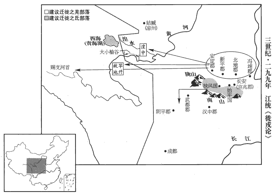 〖译文〗 “关中土地服沃,物产丰富,是帝王居住的地方,没有听说西戎、北狄应当在这块土地上居住。不属于我们的族类,他们的想法必定不同。但因为他们衰弱,把他们迁到离京城不远的地方,士人百姓习以为常,玩忽对待,欺侮他们的软弱,使他们的怨恨刻骨铭心,一旦人口繁育强盛,便产生反叛之心。以他们贪婪强悍的本性,带着愤怒的心情,等候机会合适,就伺机叛乱。他们居住在封疆之内,没有障碍工事阻隔,抢掠没有防备的人,收掠散野的财物,所以能够成为祸患而迅速蔓延,危害不可测度,这种必然的趋势,是已经验证的事实。当今最好的办法是,趁军队威势正旺盛,战时的一切都未取消,迁徒冯翊、北地、新平、安定界内的各部落羌人,安置在先零、罕、析支等地;迁徒扶风、始平、京兆的氐人,让他们出去还归陇右,安置在阴平、武都地区,发给路上所需的口粮,足以使他们自己到达。各自归附本族,返回故乡,让属国都尉、抚夷护军等官员依所辖地区集中安置他们。这样,西戎人与晋国人不相杂居,各得其所。即使他们有为乱华夏之心,兴起战乱的预兆,也与中原相隔极远,隔山阻河,虽然有敌寇作乱,所危害的地区也不会太广泛。