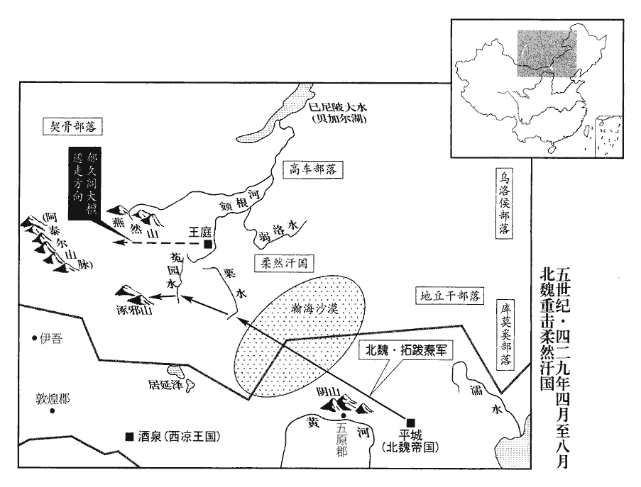 7魏有新徙敕勒千餘家‹内蒙乌兰察布盟一带›,苦於將吏侵漁,將,卽亮翻。出怨言,期以草生馬肥,亡歸漠北。尚書令劉絜、左僕射安原奏請及河冰未解,徙之河西,向春冰解,使不得北遁。魏主曰:「此曹習俗,放散日久,譬如囿中之鹿,急則奔突,緩之自定。吾區處自有道,不煩徙也。」處,昌呂翻。絜等固請不已,仍聽分徙三萬餘落于河西,西至白鹽池‹宁夏盐池北›。五原郡有白鹽池、黑鹽池,唐置鹽州,以此得名。敕勒皆驚駭,曰:「圈我於河西,欲殺我也!」圈,其卷翻,又其權翻。謀西奔涼州。劉絜屯五原河北,《水經註》:河水自朔方屈南過五原‹内蒙包头›縣西。安原屯悅拔城‹即代来城,内蒙伊金霍洛旗西北›以備之。癸卯‹十七›,敕勒數千騎叛北走,絜追討之;走者無食,相枕而死。枕,之任翻。