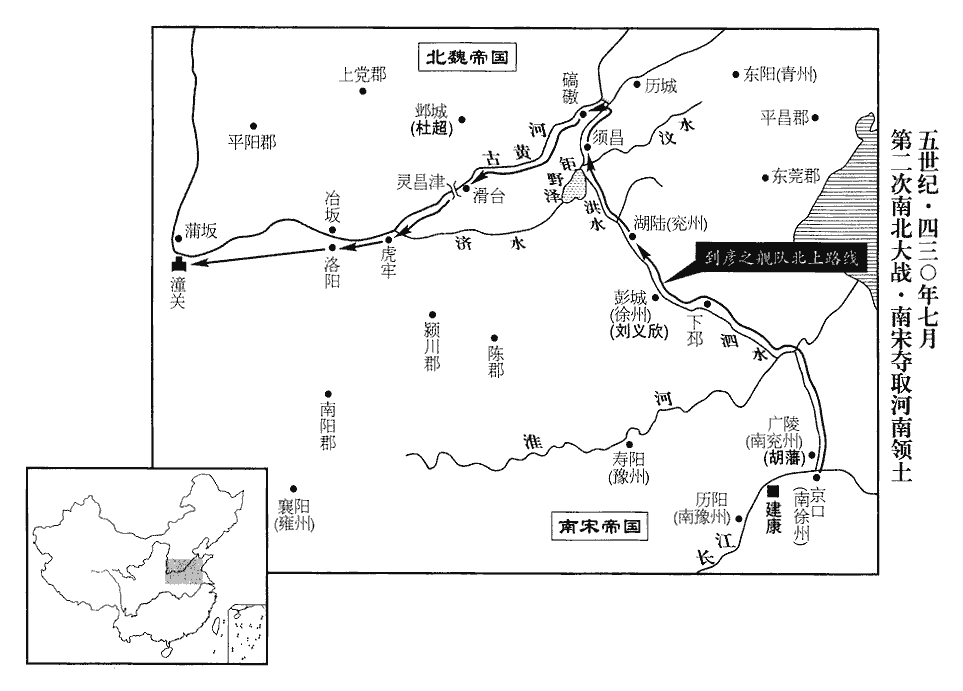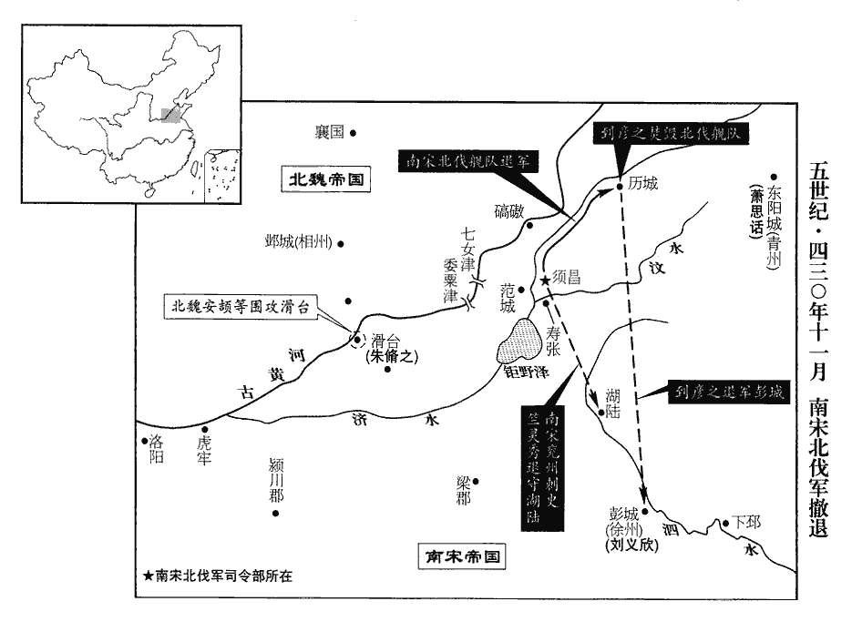 23到彥之、王仲德沿河置守,還保東平。東平郡時治須昌‹山东东平西北›。