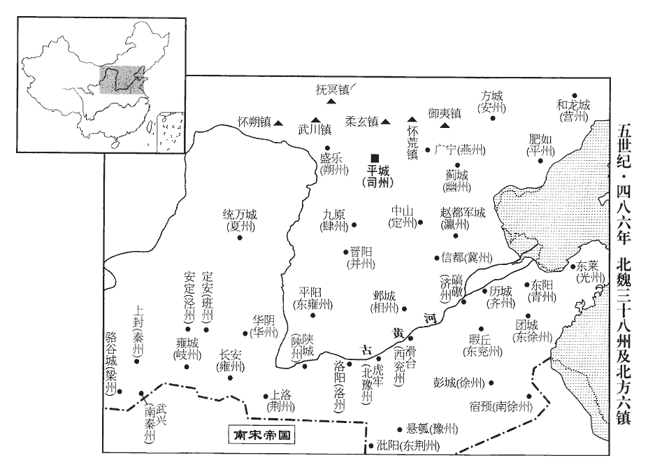 15九月,魏出宮人以賜北鎭人貧無妻者。北鎭,六鎭也,一曰懷朔鎭,直平城北。