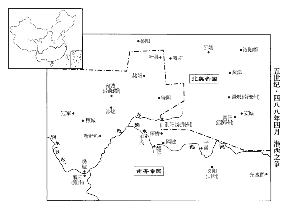 5陳顯達侵魏;甲寅‹五›,魏遣豫州‹府设悬瓠河南省汝南县›刺史拓跋斤將兵拒之。