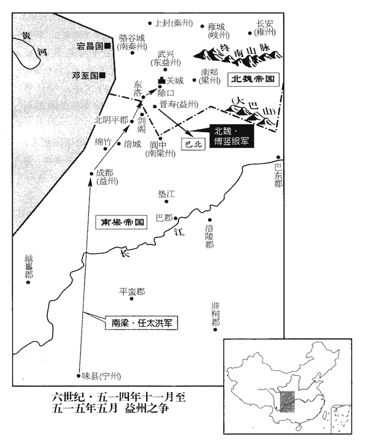 5魏王足之入寇也,事見一百四十六卷五年。上命寧州‹府设味县云南省曲靖市›刺史涪‹四川省绵阳市›人李略禦之,涪,音浮。許事平用為益州‹府设成都›。足退,上不用,略怨望,有異謀,上殺之。其兄子苗奔魏,步兵校尉泰山淳于誕嘗為益州主簿,自漢中‹陕西省汉中市›入魏,二人共說魏主以取蜀之策,說,式芮翻。魏主信之。辛亥‹六›,以司徒高肇為大將軍、平蜀大都督,將步騎十五萬寇益州;命益州‹府设晋寿四川省广元市西南›刺史傅豎眼出巴北,巴北,巴郡以北也。巴西郡,梁置。北巴州閬中縣,梁置北巴郡。將,即亮翻。豎,而涪翻。梁州‹府南郑›刺史羊祉出庾城,安西將軍奚康生出綿竹‹四川省德阳市北黄许镇›,撫軍將軍甄琛出劍閣‹四川省剑阁县北剑门关›;甄,之人翻。琛,丑林翻。乙卯‹十›,以中護軍元遙為征南將軍,都督鎮遏梁、楚。此梁、楚,謂古梁、楚大界汴、汝之間也。游肇諫,以為「今頻年水旱,百姓不宜勞役。往昔開拓,皆因城主歸款,故有征無戰。不因薛安都、常珍奇、沈文秀,魏不得淮、汝、青、徐;不因裴叔業,魏不得壽陽。游肇之言,可謂深知當時疆事者。今之陳計者真偽難分,或有怨於彼,不可全信。蜀地險隘,鎮戍無隙,豈得虛承浮說而動大軍!舉不慎始,悔將何及!」不從,以淳于誕為驍騎將軍,假李苗龍驤將軍,皆領鄉導統軍。以統軍鄉導,因以名官。驍,堅堯翻。騎,奇寄翻。驤,思將翻。鄉,讀曰嚮。