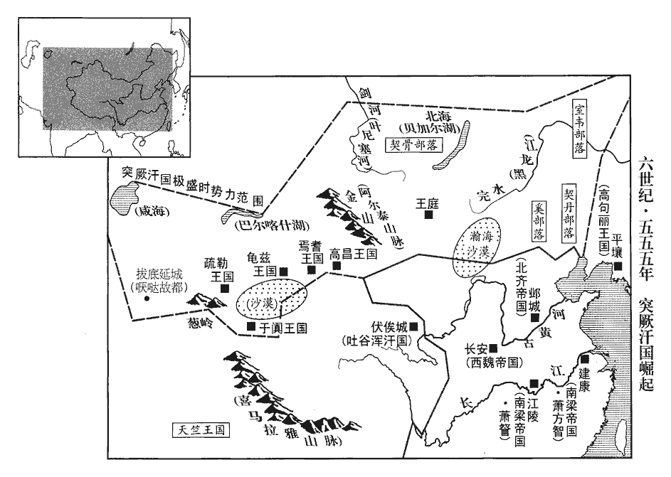 29突厥‹瀚海沙漠群›木杆可汗假道於涼州‹府设姑臧甘肃省武威市›以襲吐谷渾‹青海省›,魏太師泰使涼州刺史史寧帥騎隨之,至番禾‹甘肃省永昌县›,番禾縣,漢屬張掖郡,魏分置番禾郡。如淳曰:番,音盤。隋廢番禾郡為番禾縣,屬涼州;唐天寶三年,改為天寶縣。厥,九勿翻。杆,公旦翻。可,從刊入聲。汗,音寒。吐,從暾入聲。谷,音浴。帥,讀曰率。騎,奇寄翻。吐谷渾覺之,奔南山。木杆將分兵追之,寧曰:「樹敦‹青海省共和县›、賀真二城,吐谷渾之巢穴也,拔其本根,餘眾自散。」木杆從之。木杆從北道趣賀真,寧從南道趣樹敦。樹敦城,在曼頭山北,吐谷渾之舊都也。周穆王時,犬戎樹惇居之,因以名城。祭公謀父所謂「犬戎樹惇,能帥舊德」者也。趣,七喻翻。吐谷渾可汗【章:十二行本「汗」下有「夸呂」二字;乙十一行本同;孔本同;張校同。】在賀真,使其征南王將數千人守樹敦。將,即亮翻。木杆破賀真,獲夸呂妻子;寧破樹敦,虜征南王;還,與木杆會于青海,吐谷渾中有青海,周回千餘里,海中有小山。每冬冰合,以良牝馬置此山,至來春收之,牝馬皆有孕,生駒,號為龍種,必多駿異,日行千里。木杆歎寧勇決,贈遺甚厚。遺,于季翻。