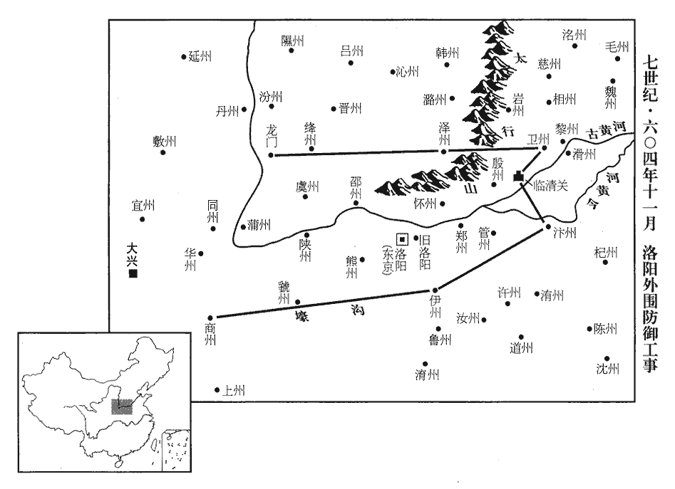 8丙申‹四›,發丁男數十萬掘塹,自龍門‹山西省河津县›東接長平、汲郡,龍門縣,屬蒲州。長平郡,澤州‹山西省晋城市›。汲郡,衛州‹河南省淇县东›。塹,七豔翻。抵臨清關‹河南省新乡市东北›,唐志:衛州新鄉縣東北有臨清關。渡河至浚儀、襄城,浚儀,汴州‹河南省开封市›。襄城,汝州‹河南省汝州市›。達於上洛,上洛,商州‹陕西省商州市›。以置關防。