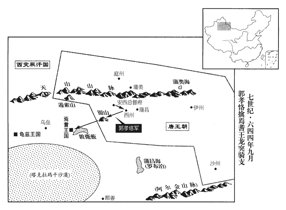 12焉耆‹新疆焉耆县›貳於西突厥‹新疆东北部及中亚东部›,西突厥大臣屈利啜為其弟娶焉耆王女,啜,陟劣翻。為,于偽翻。由是朝貢多闕;安西‹总督府设交河新疆吐鲁番市›都護郭孝恪請討之。按唐六典,永徽中,始置安南、安西大都護。又按舊書郭孝恪傳:貞觀十六年,行安西都護、西州刺史。蓋滅高昌後,便置安西都護,而加「大」字則在永徽中也。安西都護府時治西州,西至焉耆七百一十里。詔以孝恪為西州道行軍總管,帥步騎三千出銀山道‹新疆托克逊县西南›以擊之。帥,讀曰率。騎,奇寄翻。會焉耆王弟頡鼻兄弟三人至西州‹新疆吐鲁番市东›,孝恪以頡鼻弟栗婆準為鄉導。鄉,讀曰嚮。焉耆城四面皆水,恃險而不設備,孝恪倍道兼行,夜,至城下,命將士浮水而渡,將,即亮翻。比曉,登城,執其王突騎支,比,必寐翻。舊唐書作「龍突騎支」。騎,奇寄翻;下同。獲首虜七千級,留栗婆準攝國事而還。還,從宣翻,又如字。孝恪去三日,屈利啜引兵救焉耆,不及,執栗婆準,以勁騎五千,追孝恪至銀山,孝恪還擊,破之,追奔數十里。