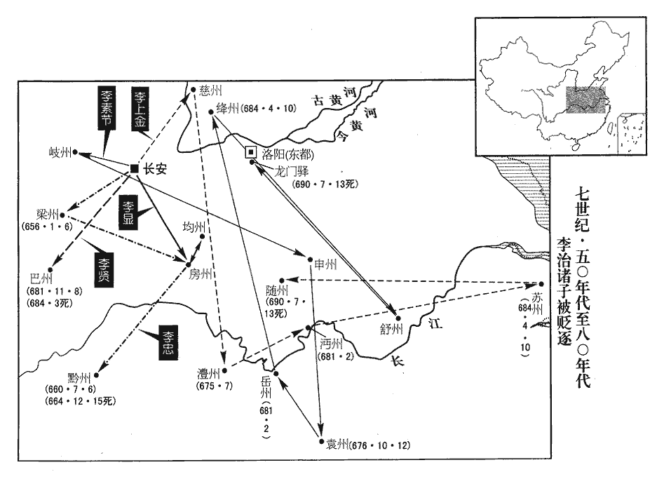 19十一月,癸卯‹八›,徙故太子賢於巴州‹四川省巴中市›。舊志:巴州至京師二千三百六十里,東都二千五百八十二里。