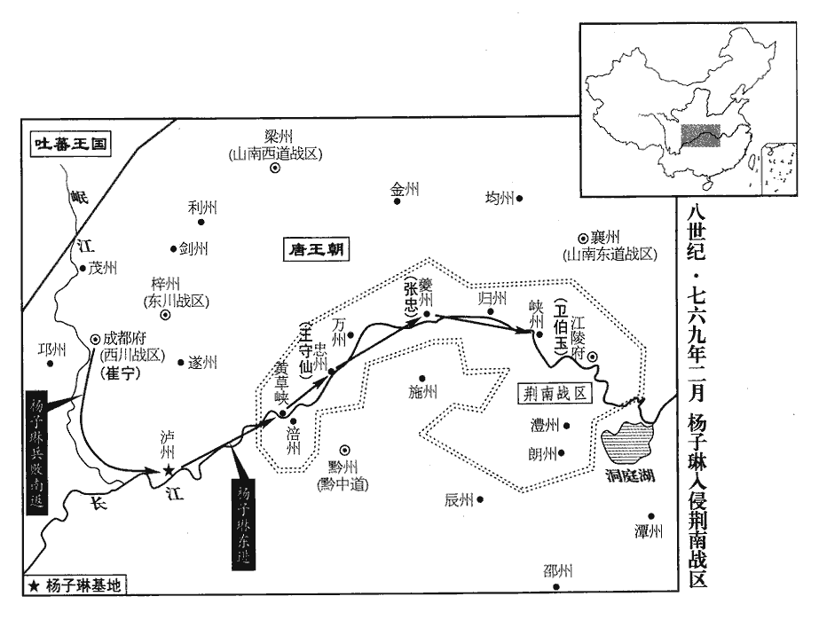 7壬子‹二十六›,以杜鴻漸為山南西道•劍南東•西川副元帥、劍南西川‹总部设成都府四川省成都市›節度使,以平蜀亂。崔旰之亂也。帥,所類翻。使,疏吏翻。