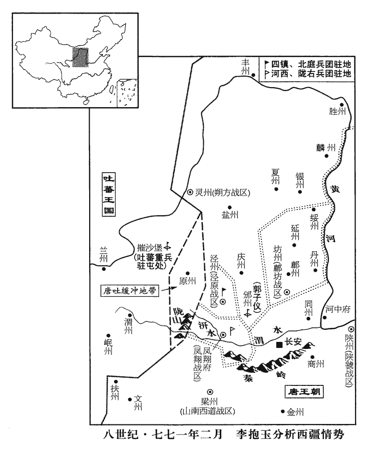 1春,二月,壬寅‹十五›,河西、隴右、山南西道‹总部设盩厔陕西省周至县›副元帥兼澤潞、山南西道節度使李抱玉上言:帥,所類翻。使,疏吏翻。上,時兩翻。「凡所掌之兵,當自訓練。今自河、隴‹甘肃省及青海省东部›達於扶‹四川省九寨沟县›、文‹甘肃省文县›,綿亘二千餘里,撫御至難。若吐蕃道岷‹甘肃省岷县›、隴‹陕西省陇县›【章:十二行本「蕃」下有「兩」字,「道」下無「岷隴」二字;乙十一行本同。】俱下吐,從暾入聲。言蕃兵入寇,分道向岷、隴二州而下。臣保固汧‹渭水支流千水›、隴‹陇山›則不救梁‹陕西省汉中市›、岷‹岷山›,進兵扶、文則寇逼關輔‹京畿›,首尾不贍,進退無從。願更擇能臣,委以山南,使臣得專備隴坻‹甘肃省东部›。」‹李豫(李俶)本年四十六岁›詔許之。汧qiān,口堅翻。坻,音底。
