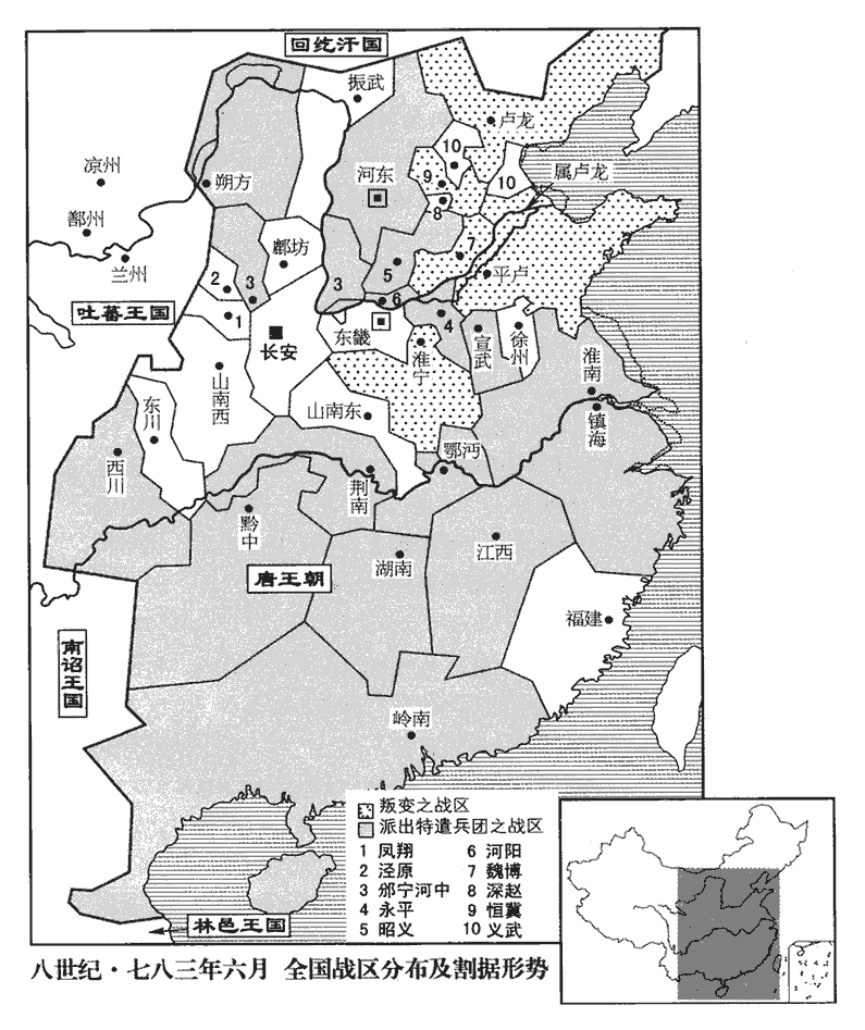 賈林復說武俊曰:復,扶又翻。「自古國家有患,未必不因之更興;況主上九葉天子,自高祖、太宗、高宗、中宗、睿宗、玄宗、肅宗、代宗至帝,凡九世。聰明英武,天下誰肯捨之共事朱泚乎!滔自為盟主以來,輕蔑同列。河朔‹河北平原›古無冀國,冀‹河北省冀州市›乃大夫之封域也。滔稱冀王,蓋奄禹跡冀州之域以自大。而王武俊巡屬有冀州,故林以是間之。今滔稱冀王,又西倚其兄,泚者,滔兄。北引回紇,其志欲盡吞河朔而王之,大夫雖欲為之臣,不可得矣。田悅之間王武俊、朱滔,與賈林之說王武俊者同一利害耳。人惟趨利而避害,故說行,非有他巧也。且大夫雄勇善戰,非滔之比;又本以忠義手誅叛臣,謂殺李惟岳也。當時宰相處置失宜,處,昌呂翻。為滔所誑誘,故蹉跌至此。蹉,倉何翻。跌,徒結翻。不若與昭義併力取滔,其勢必獲。滔既亡,則泚自破矣。此不世之功,轉禍為福之道也。今諸道輻湊攻泚,不日當平。天下已定,大夫乃悔過而歸國,則已晚矣!」時武俊已與滔有隙,因攘袂作色曰:「二百年天子吾不能臣,豈能臣此田舍兒乎!」遂與抱真及馬燧相結,約為兄弟;然猶外事滔,禮甚謹,與田悅各遣使見滔於河間,瀛州,治河間縣。賀朱泚稱尊號,且請馬寔之兵共攻康日知於趙州。