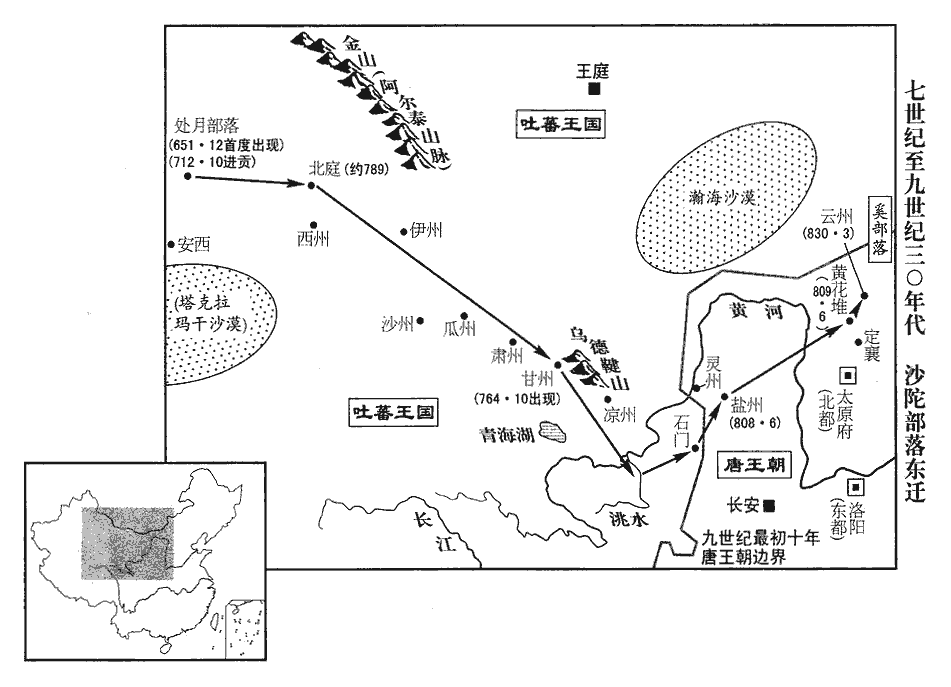 12沙陀‹初在新疆西北部›勁勇冠諸胡,吐蕃置之甘州‹甘肃省张掖市›,沙陀降吐蕃見二百三十三卷貞元六年。冠,古玩翻。每戰,以為前鋒。回鶻攻吐蕃,取涼州‹甘肃省武威市›;吐蕃疑沙陀‹甘肃省张掖市›貳於回鶻,欲遷之河外。沙陀懼,酋長朱邪盡忠與其子執宜謀復自歸於唐,復,扶又翻。遂帥部落三萬,循烏德鞬山‹内蒙古阿拉善右旗南龙首山›而東。帥,讀曰率;下同。烏德鞬山在回鶻牙帳之西,甘州東北。史炤曰:唐曆云即鬱督軍山,虜語兩音也。鞬,居言翻。行三日,吐蕃追兵大至,自洮水‹黄河支流›轉戰至石門‹宁夏固原县北›,水經註:洮水至枹罕入河。枹罕,唐為河州。石門水,在高平縣西八十里,唐於此置石門關,在原州平高縣界。凡數百合;盡忠死,士眾死者太半。執宜帥其餘眾猶近萬人,騎三千,詣靈州‹宁夏灵武市›降。近,其靳翻。考異曰:趙鳳後唐懿祖紀年錄曰:「懿祖諱執宜,烈考諱盡忠,自曾祖入覲,復典兵於磧北。德宗貞元五年,回紇葛祿部及白眼突厥叛回紇忠貞可汗,附于吐蕃,因為鄉導,驅吐蕃之眾三十萬寇我北庭。烈考謂忠貞可汗曰:『吐蕃前年屠陷靈、鹽,聞唐天子欲與贊普和親,可汗數世有功,尚主,恩若驕兒,若贊普有寵於唐,則可汗必無前日之寵矣。』忠貞曰:『若之何?』烈考曰:『唐將楊襲古固守北庭,無路歸朝,今吐蕃、突厥併兵攻之,儻無援助,陷亡必矣。北庭既沒,次及于吾,可汗得無慮乎!』忠貞懼,乃命其將頡干迦斯與烈考將兵援北庭。貞元六年,與吐蕃戰于磧口,頡干迦斯不利而退。烈考牙於城下以援襲古,吐蕃攻圍經年,諸部繼沒。十二月,北庭之眾劫烈考降於吐蕃,由是舉族七千帳徙於甘州,臣事贊普。貞元十三年,回紇奉誠可汗收復涼州,大敗吐蕃之眾,或有間烈考於贊普者云:『沙陀本回紇部人,今聞回紇強,必為內應。』贊普將遷烈考之牙於河外。時懿祖年已及冠,白烈考曰:『吾家世為唐臣,不幸陷虜,為他效命,反見猜嫌,不如乘其不意,復歸本朝。』烈考然之。貞元十七年,自烏德鞬山率其部三萬東奔。居三日,吐蕃追兵大至,自洮河轉戰至石門關,委曲三千里,凡數百戰,烈考戰沒,懿祖挾護靈輿,收合餘眾,至於靈州,猶有馬三千騎,勝兵一萬。時范希朝為河西、靈鹽節度使,聞懿祖至,自帥師蕃界,應接而歸,以事奏聞。德宗遣中使賜詔慰勞,賞錫數十萬,因於鹽州置陰山府,以懿祖為都督,授特進、驍衛將軍同正。憲宗即位,詔懿祖入覲。元和元年七月,帝自振武至長安,授特進、金吾衛將軍,留宿衛。時范希朝亦徵為金吾上將軍。二年,吐蕃誘我党項部,寇犯河西,天子復命希朝為靈鹽節度,命懿祖將兵佐之。賊平,戍西受降城。」據德宗實錄,貞元十七年無沙陀歸國事。范希朝傳,德宗時為振武節度使,元和二年乃為朔方、靈鹽節度使,誘致沙陀。元和元年亦無沙陀朝見。紀年錄恐誤。今從實錄、舊傳、新書。靈鹽‹总部设灵州宁夏灵武市›節度使范希朝聞之,自帥眾迎於塞上,置之鹽州‹陕西省定边县›,為市牛羊,廣其畜牧,善撫之。為,于偽翻。詔置陰山府,以執宜為兵馬使。未幾,盡忠弟葛勒阿波又帥眾七百詣希朝降;幾,居豈翻。詔以為陰山府‹羁縻军区·总部设盐州陕西省定边县›都督。自是,靈鹽每有征討,用之所向皆捷,靈鹽軍益強。為沙陀強盛得中夏張本。