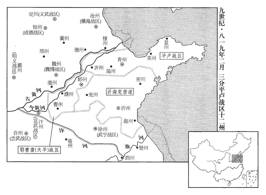 三月,戊子‹十›,以華州‹陕西省华县›刺史馬總為鄆、曹、濮等州‹总部设郓州山东省东平县›節度使。己丑‹十一›,以義成節度使薛平為平盧‹总部改设青州山东省青州市›節度、淄•青•齊•登•萊等州‹首府同设青州›觀察使。自是之後,淄青專平盧之號,而鄆尋賜號天平軍矣。以淄青四面行營供軍使王遂為沂、海、兗、密等州‹首府设沂州山东省临沂市›觀察使。為王遂以嚴酷召亂張本。