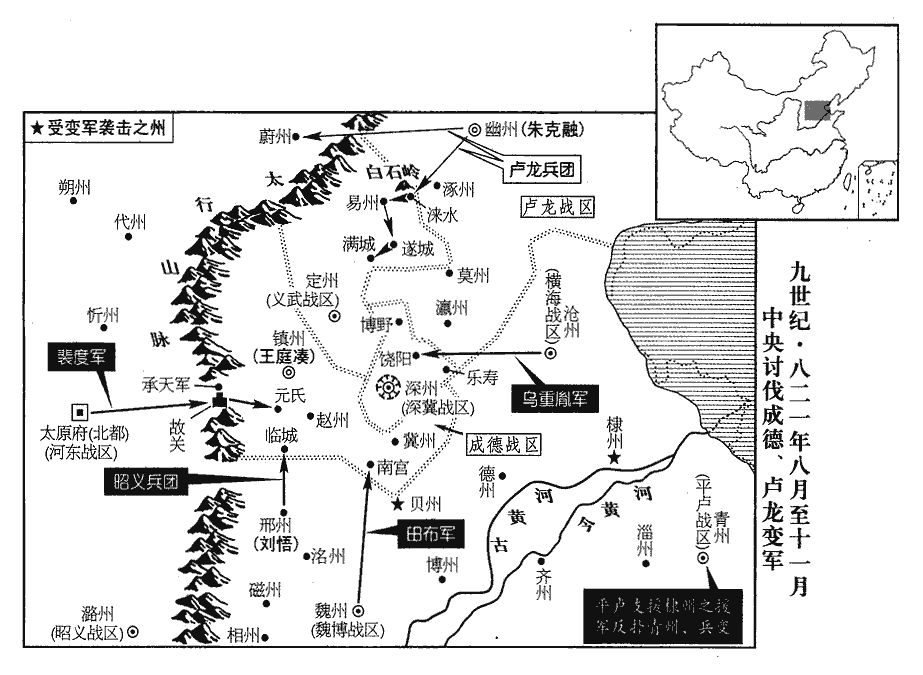 13加劉悟檢校司徒,餘如故。自是悟浸驕,欲效河北三鎮,魏、鎮、幽為河北三鎮。招聚不逞,不逞者,欲為非而不得逞志者也。章表多不遜。