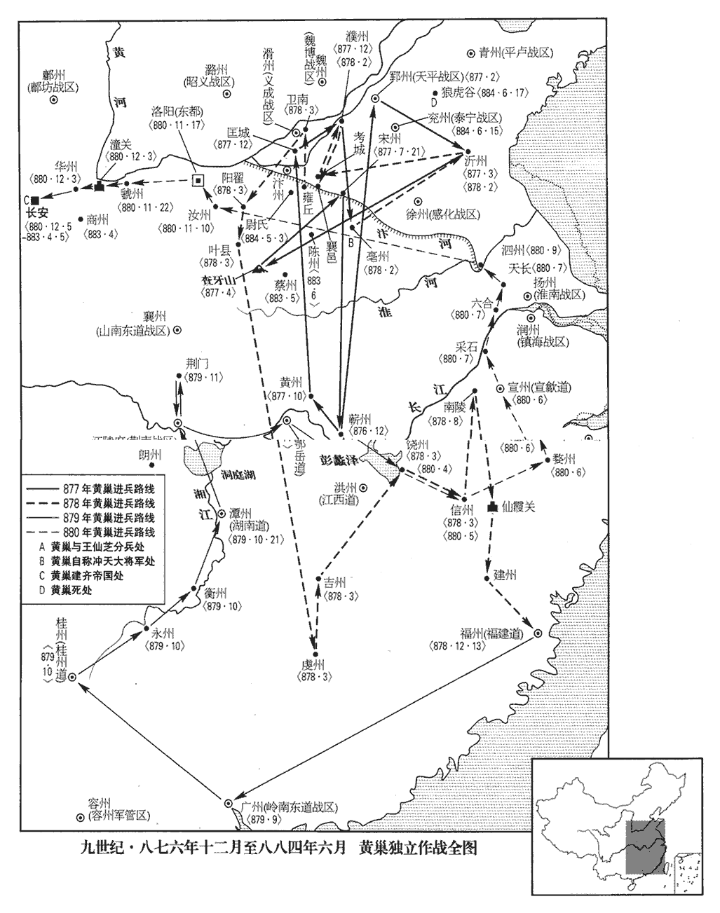 30感化‹总部设徐州江苏省徐州市›節度使時溥pǔ營於溵水‹沙河›;遏黃巢之兵,且為陳州聲援也。加溥東面兵馬都統。