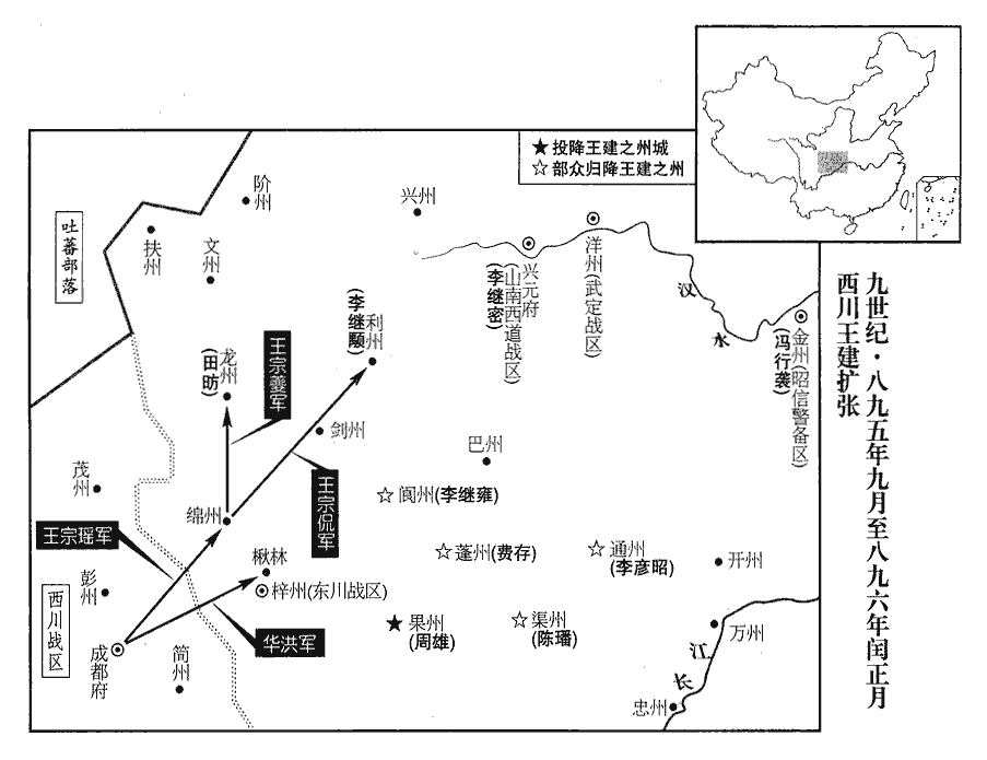 22丙戌‹六›,上遣中使詣梓州‹四川省三台县›和解兩川,王建雖奉詔還成都‹四川省成都市›,然猶連兵未解。