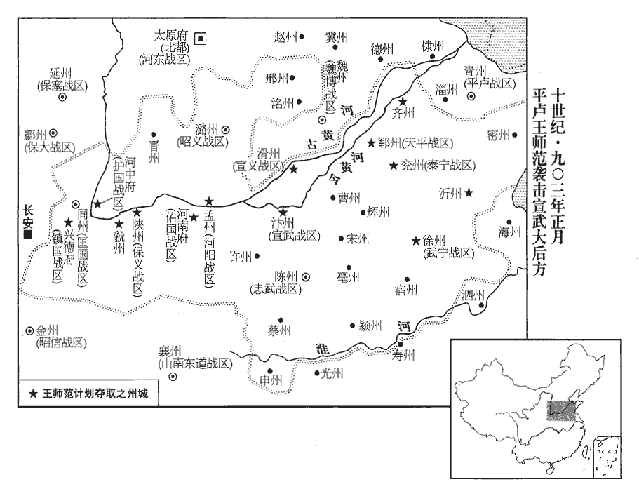2平盧‹总部设青州山东省青州市›節度使王師範,頗好學,好,呼到翻。以忠義自許,為治有聲迹。聲聞於時而治有實迹,所謂名與實稱。好,呼到翻。治,直吏翻。朱全忠圍鳳翔,韓全誨以詔書徵藩鎮兵入援乘輿,師範見之,泣下霑衿,曰:「吾屬為帝室藩屏,乘,繩證翻。衿,音今。屏,必郢翻。豈得坐視天子困辱如此;各擁強兵,但自衛乎!」會張濬自長水‹河南省洛宁县西南长水镇›亦遺之書,遺,于季翻。勸舉義兵。師範曰:「張公言正會吾意,夫復何疑!夫,音扶。復,扶又翻。雖力不足,當死生以之。」