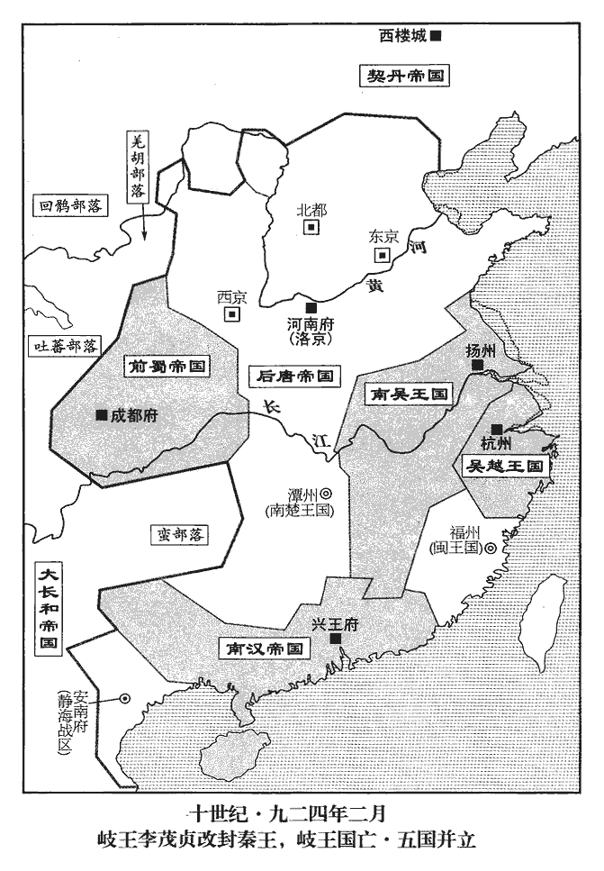 10漢主‹首都兴王府广东省广州市›刘岩,本年三十七岁聞帝滅梁而懼,遣宮苑使何詞入貢,且覘中國強弱。覘,丑廉翻,又丑豔翻。甲申‹二十一›,詞至魏。時帝在魏都‹河北省大名县›。及還,還,從宣翻,又如字。言帝驕淫無政,不足畏也。漢主大悅,自是不復通中國。復,扶又翻。無敵國外患者國恆亡。漢主既知唐之不足畏,奢虐亦由是滋矣。