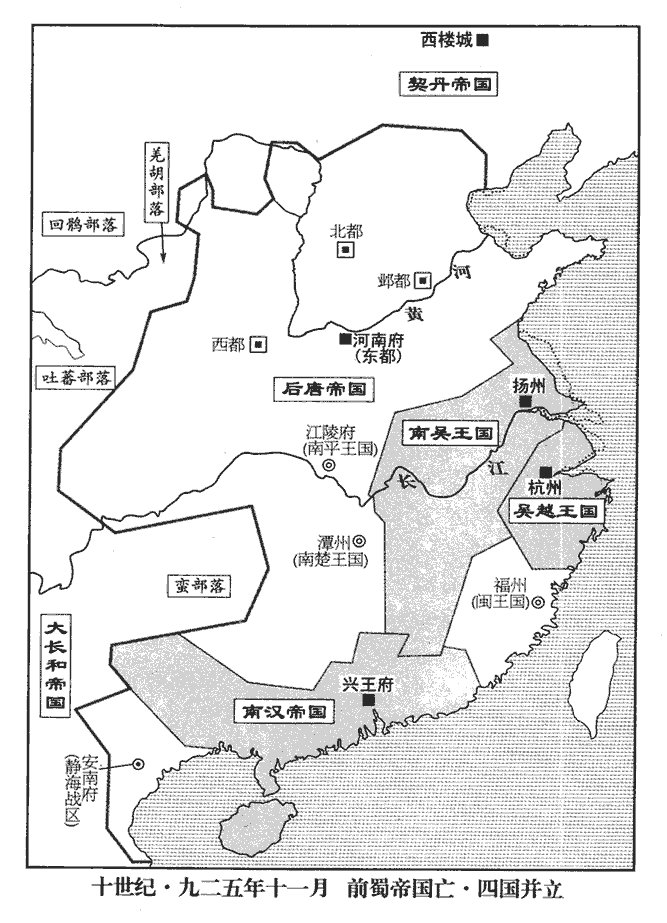 13庚子‹十二›,彰武‹总部延州›、保大‹总部鄜州›節度使兼中書令高萬興卒,梁貞明四年,高萬興兼鎮鄜延。唐以延州置保塞軍,岐改為忠義軍,後唐改為彰武軍。鄜,保大軍。以其子保大留後允韜為彰武留後。