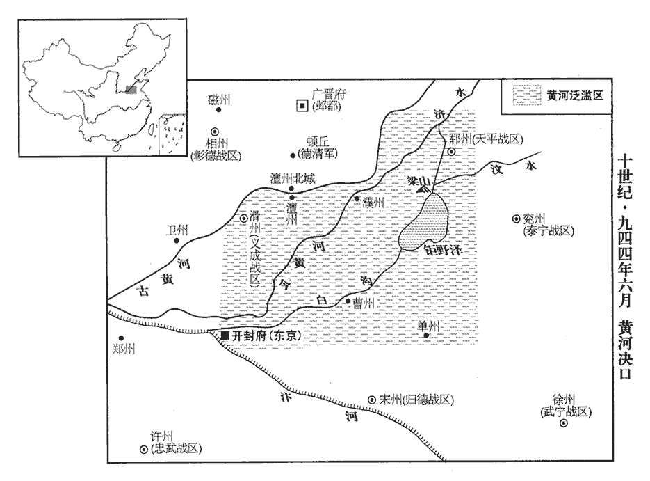 乙巳‹二›,遣侍衛馬軍都【章:十二行本「都」下有「指」字;乙十一行本同;孔本同;熊校同。】揮使•義成‹总部设滑州河南省滑县›節度使李守貞、神武統軍皇甫遇、陳州‹河南省淮阳县›防禦使梁漢璋、懷州‹河南省沁阳市›刺史薛懷讓將兵萬人,緣河水陸俱進。守貞,河陽;漢璋,應州‹山西省应县›;懷讓,太原人也。