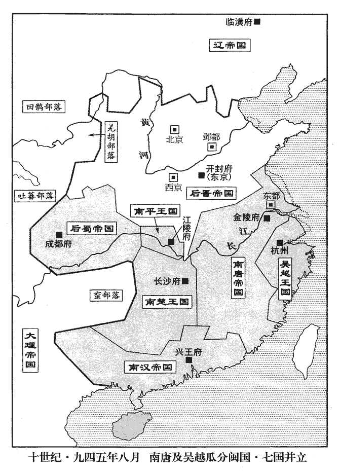 3晉昌‹总部京兆府陕西省西安市›節度使兼侍中趙在禮,晉以京兆府為晉昌軍。更歷十鎮,更,工衡翻。趙在禮起於鄴都,徙義成不行,後歷橫海‹总部沧州›、泰寧‹总部兖州›、匡國‹总部同州›、天平‹总部郓州›、忠武‹总部许州›、武寧‹总部徐州›、歸德‹总部宋州›、晉昌‹总部京兆府›,凡十鎮。所至貪暴,家貲為諸帥之最。帥,所類翻。帝‹石重贵,本年三十三岁›利其富,三月,庚申‹十九›,為皇子鎮寧‹总部设澶州河南省濮阳市›節度使延煦娶其女。為,于偽翻。鎮寧軍,澶州。煦,吁句翻。在禮自費緡錢十萬,縣官之費,數倍過之。延煦及弟延寶,皆高祖‹石敬瑭›諸孫,帝‹石重贵›養以為子。