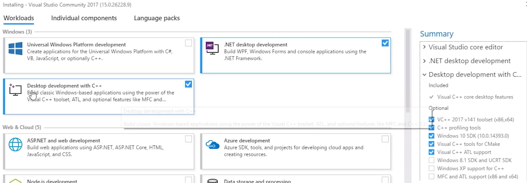 安装勾选: