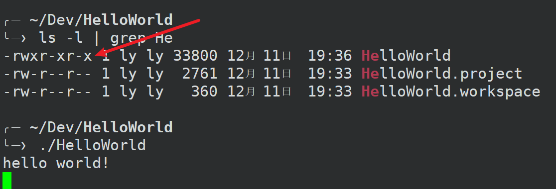 # HelloWorld 是可执行文件的名称