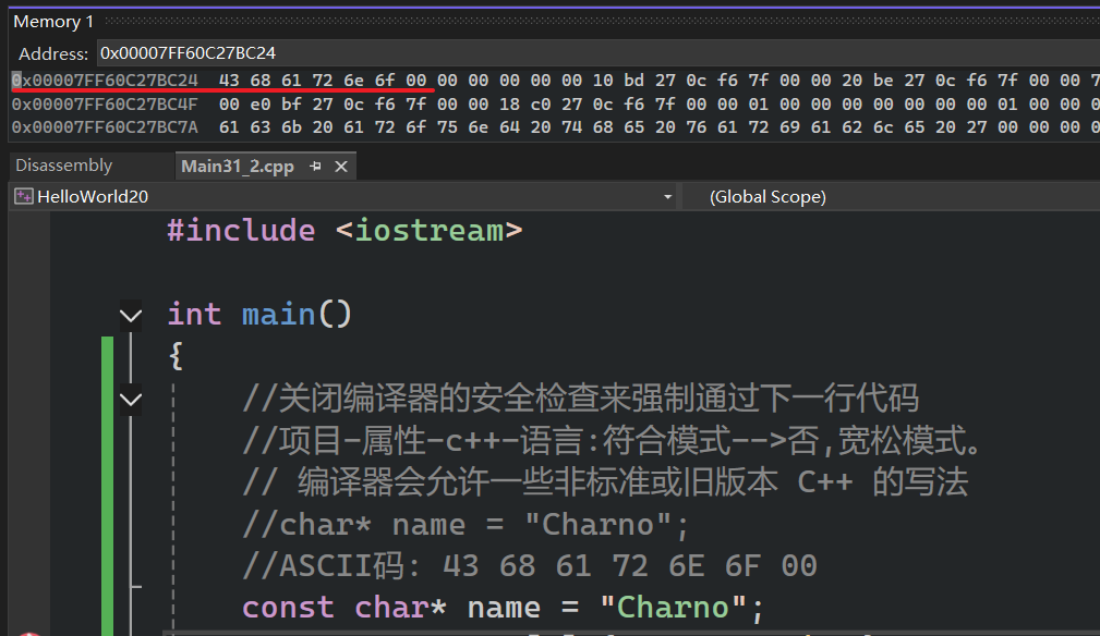 //"Cherno"->"const char[7]"