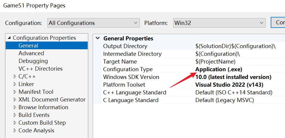 右键项目Game51属性修改