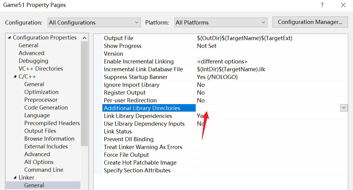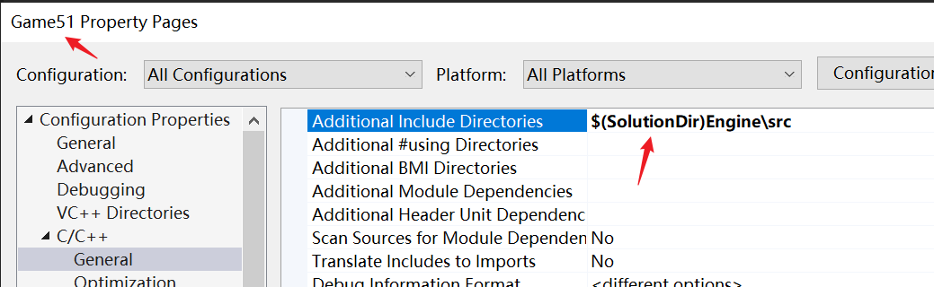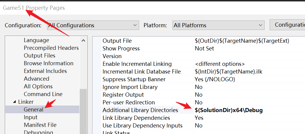 - 如果使用方法1,如果Engine的名字改了,那么Engine.lib名称也会改,则需要在Game51项目右键中,修改