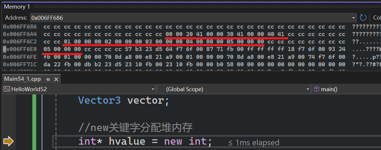 delete hvector;- new实际上只是调用了malloc的函数,转而调用底层操作系统的平台特定函数,并会在堆上分配内存