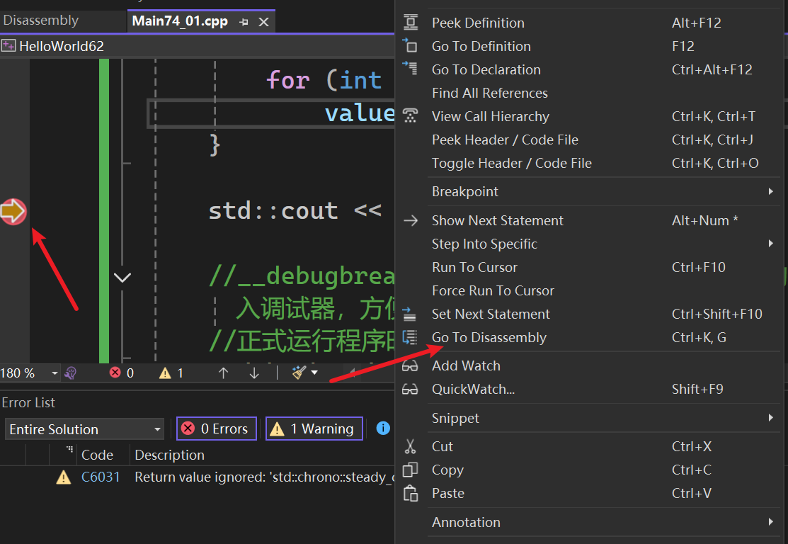 //__debugbreak() 是 MSVC (Windows) 特有的编译器内置函数,会在这里中断程序,进入调试器,方便我们查看变量的值