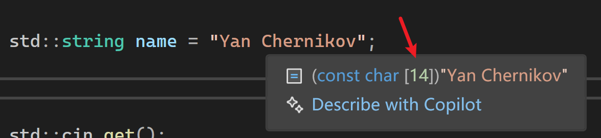 std::string name = "Yan Chernikov";//13个字符